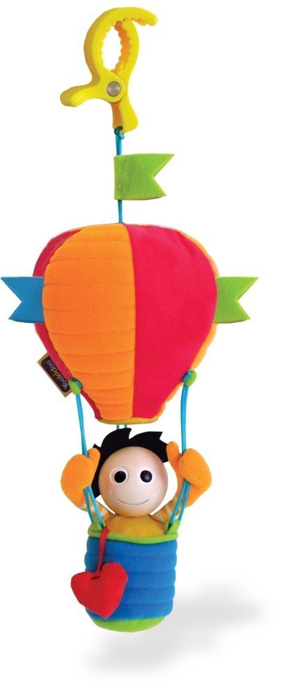 La Yokidoo ci propone una divertente Mongolfiera con sonaglio, clip e stoffe .da appendere ovunque e Sviluppare la coordinazione occhio-mano.